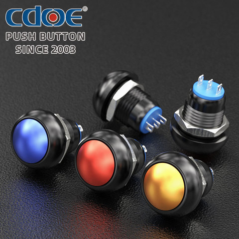 Cdoe không thấm nước IP65 pushswitch 22mm 25mm 30mm chống phá hoại kim loại màu đỏ màu xanh lá cây màu xanh tạm thời nút 12V 220V 250V đầu điện áp tối đa